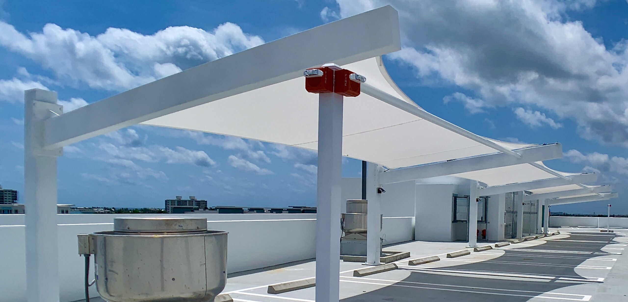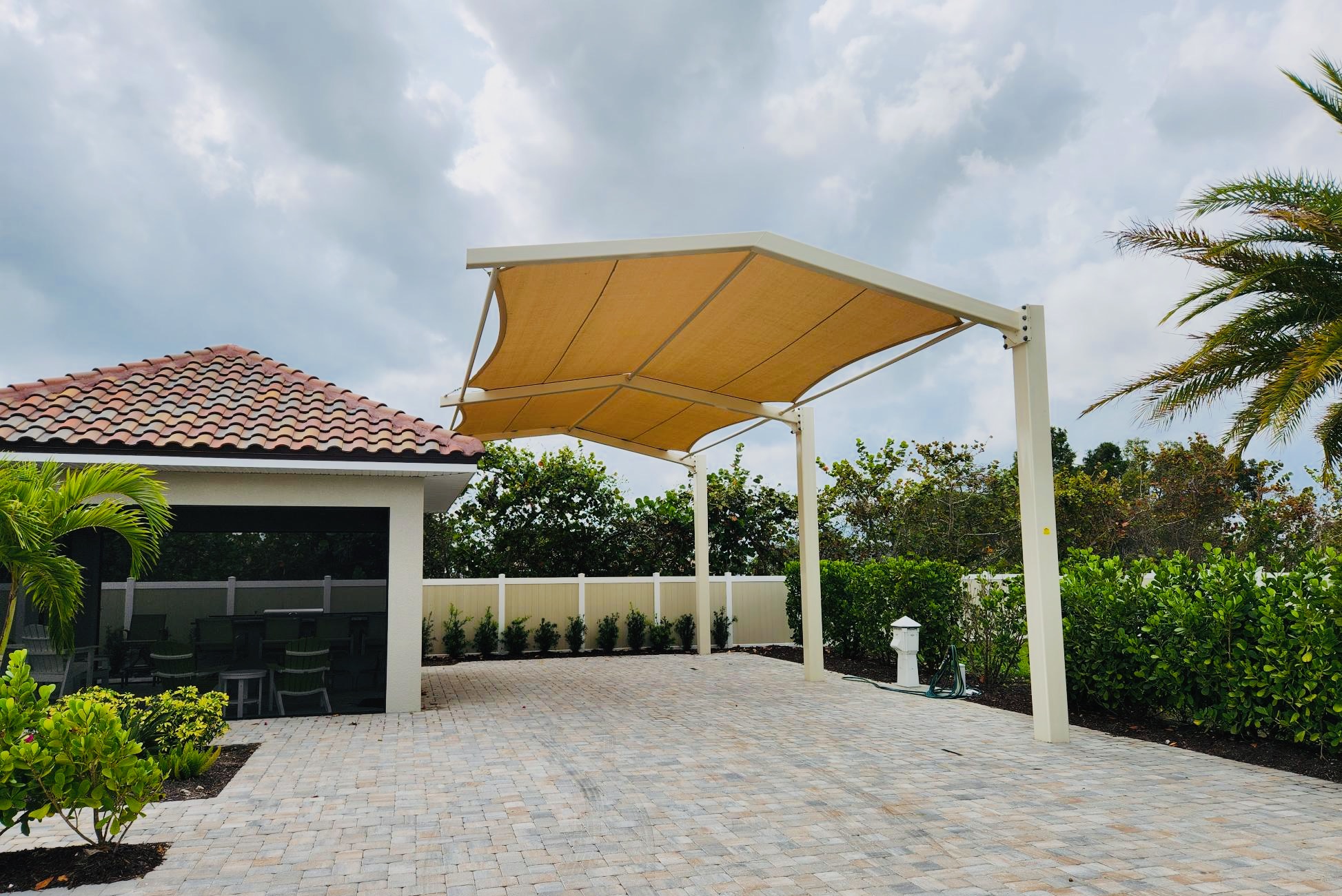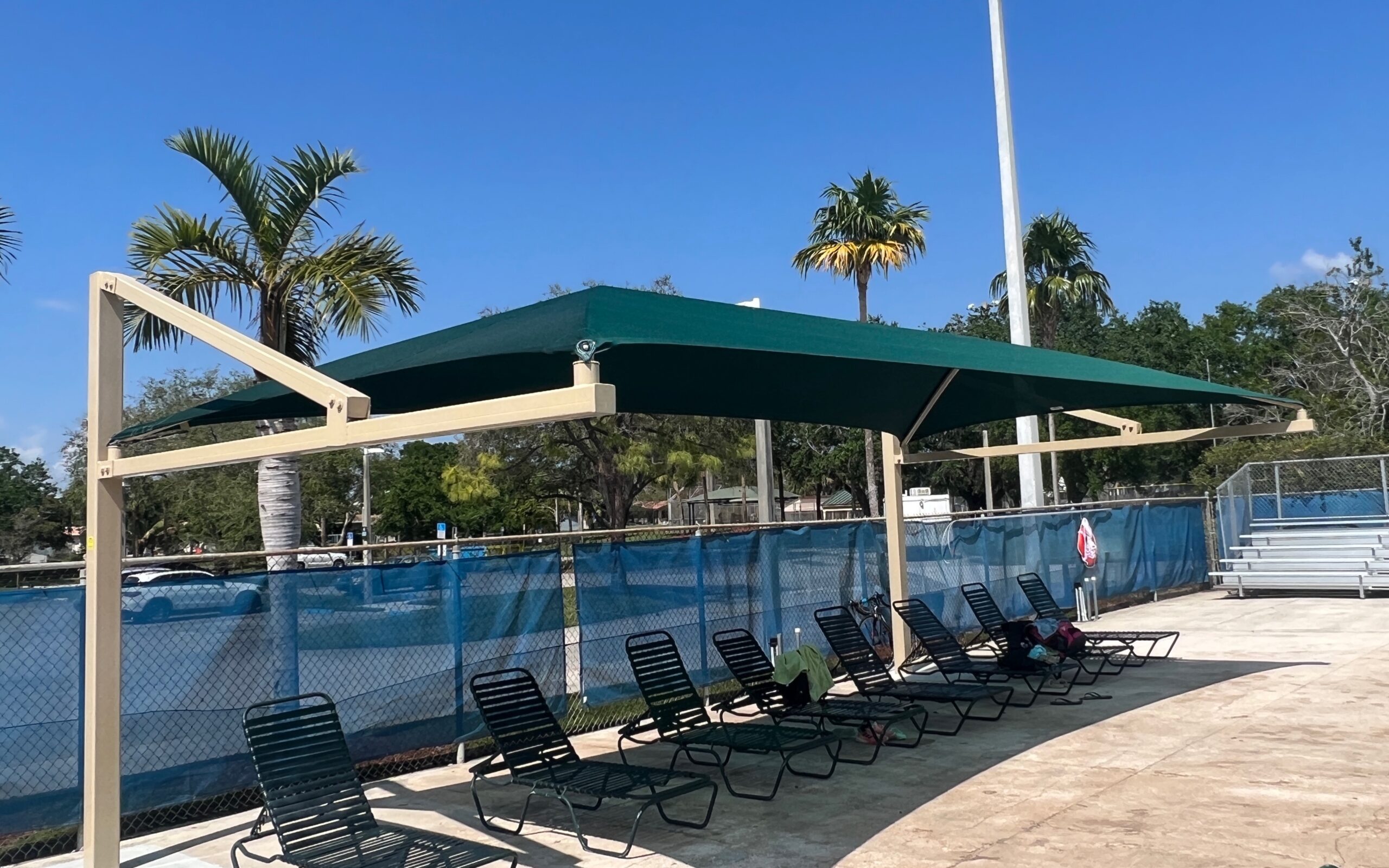 At Industrial Shadeports, our extensive experience and versatility in crafting customized sun shades set us apart as a leader in the industry. We are dedicated to guiding you through every stage of the process—from the initial consultation to the crafting of your unique project, and even ongoing maintenance and repairs. Our commitment to quality is reflected in our innovative use of mesh shade cloth fabric, which not only enhances the durability of our sun shades and sun shade sails, but also adds a touch of aesthetic appeal to your outdoor spaces. As a certified general contractor specializing solely in sun shade structures, we channel all our expertise into delivering exceptional products and services tailored to your needs. We take immense pride in our reliability and dedication to customer satisfaction, ensuring that we meet all deadlines and budgets while remaining flexible to your requirements. With Industrial Shadeports, you can look forward to the transformative beauty of our sun shade structures, designed specifically for you, and a partnership built on trust and excellence.
