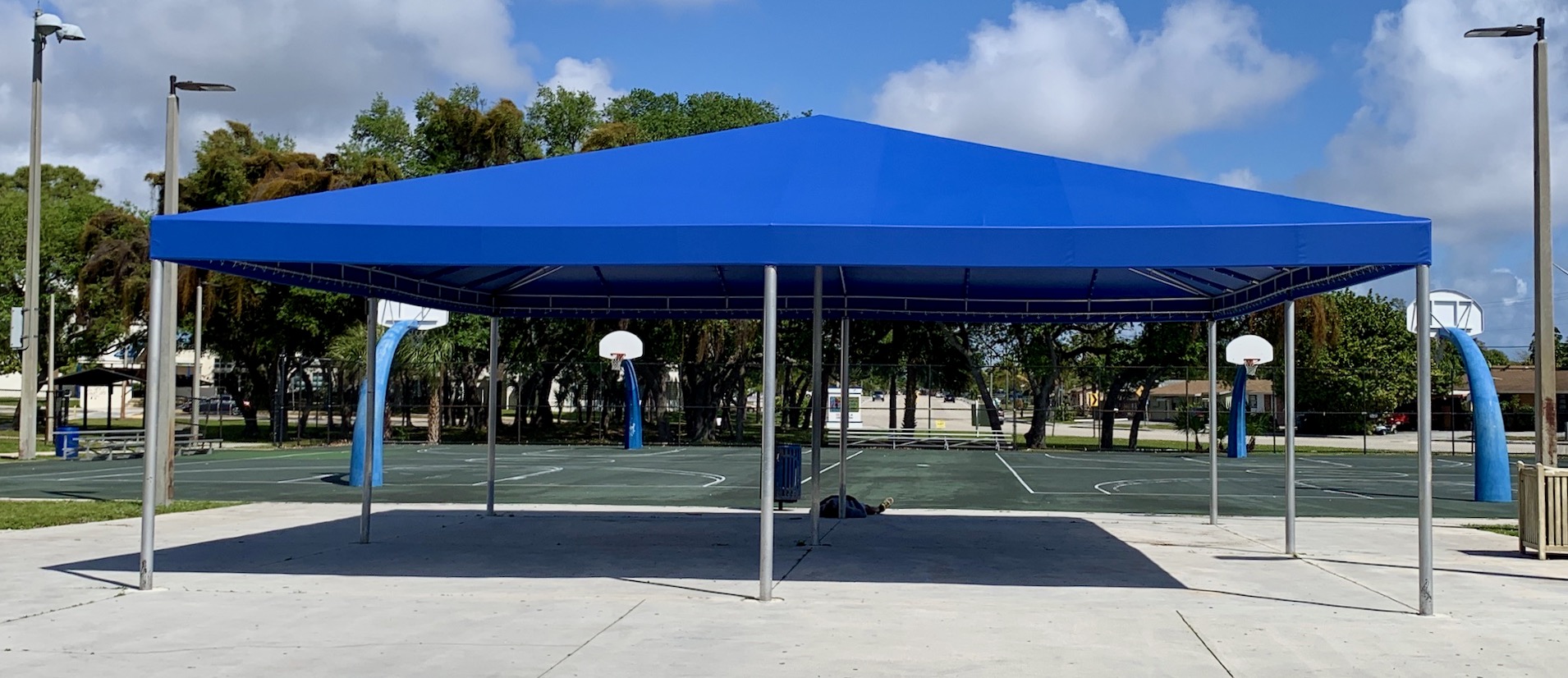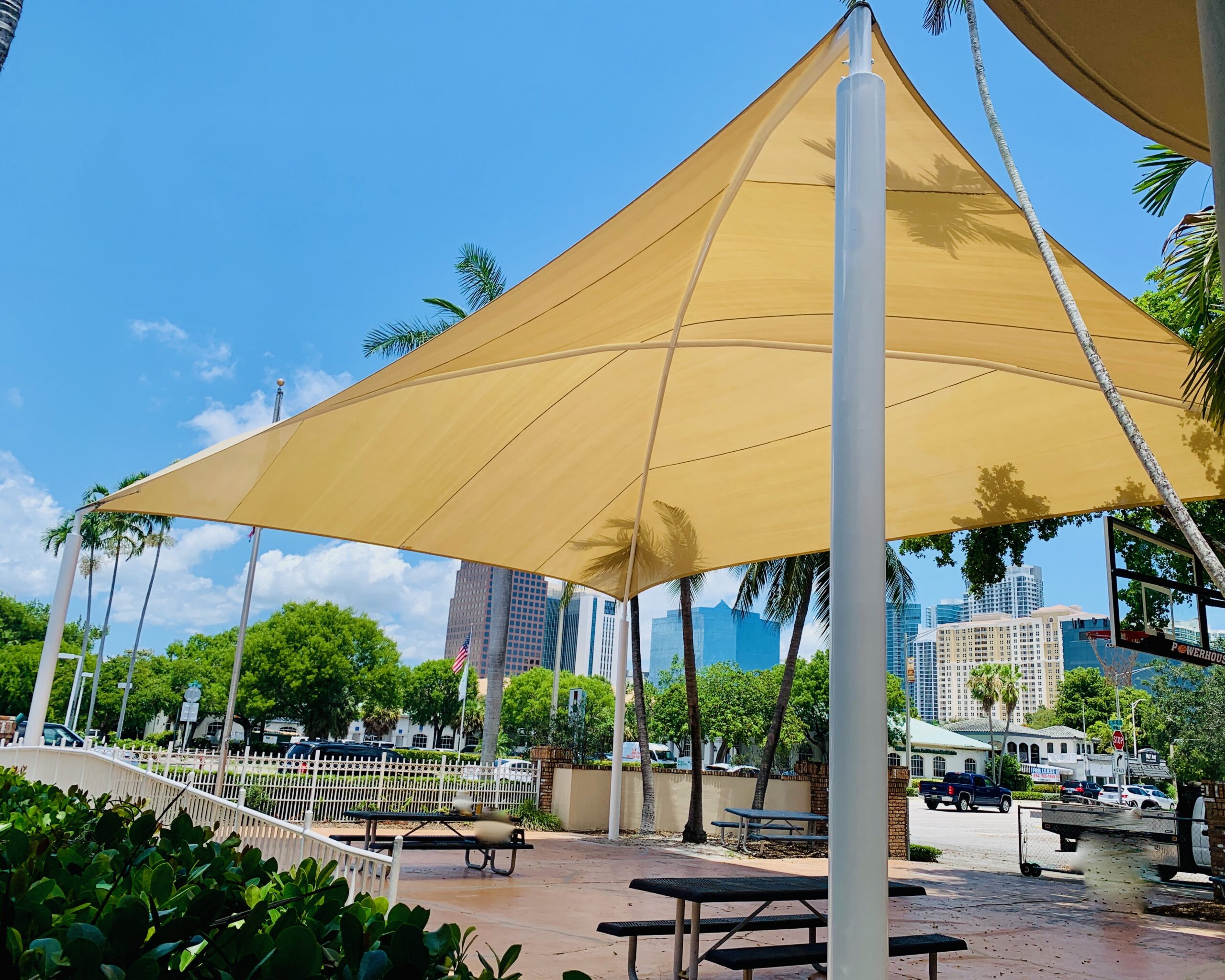 At Industrial Shadeports, our extensive experience and versatility in crafting customized sun shades set us apart as a leader in the industry. We are dedicated to guiding you through every stage of the process—from the initial consultation to the crafting of your unique project, and even ongoing maintenance and repairs. Our commitment to quality is reflected in our innovative use of mesh shade cloth fabric, which not only enhances the durability of our sun shades and sun shade sails, but also adds a touch of aesthetic appeal to your outdoor spaces. As a certified general contractor specializing solely in sun shade structures, we channel all our expertise into delivering exceptional products and services tailored to your needs. We take immense pride in our reliability and dedication to customer satisfaction, ensuring that we meet all deadlines and budgets while remaining flexible to your requirements. With Industrial Shadeports, you can look forward to the transformative beauty of our sun shade structures, designed specifically for you, and a partnership built on trust and excellence.