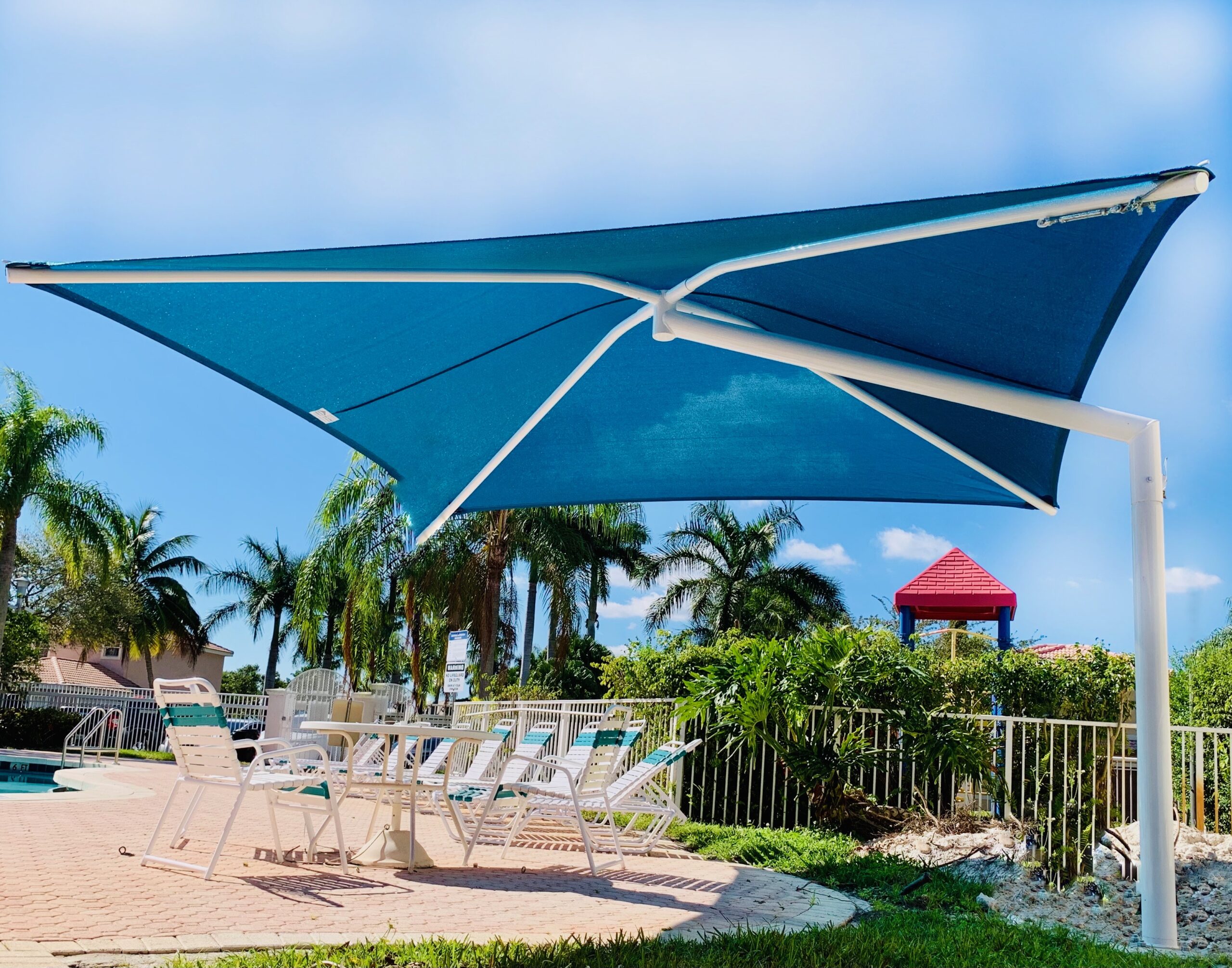 At Industrial Shadeports, our extensive experience and versatility in crafting customized sun shades set us apart as a leader in the industry. We are dedicated to guiding you through every stage of the process—from the initial consultation to the crafting of your unique project, and even ongoing maintenance and repairs. Our commitment to quality is reflected in our innovative use of mesh shade cloth fabric, which not only enhances the durability of our sun shades and sun shade sails, but also adds a touch of aesthetic appeal to your outdoor spaces. As a certified general contractor specializing solely in sun shade structures, we channel all our expertise into delivering exceptional products and services tailored to your needs. We take immense pride in our reliability and dedication to customer satisfaction, ensuring that we meet all deadlines and budgets while remaining flexible to your requirements. With Industrial Shadeports, you can look forward to the transformative beauty of our sun shade structures, designed specifically for you, and a partnership built on trust and excellence.